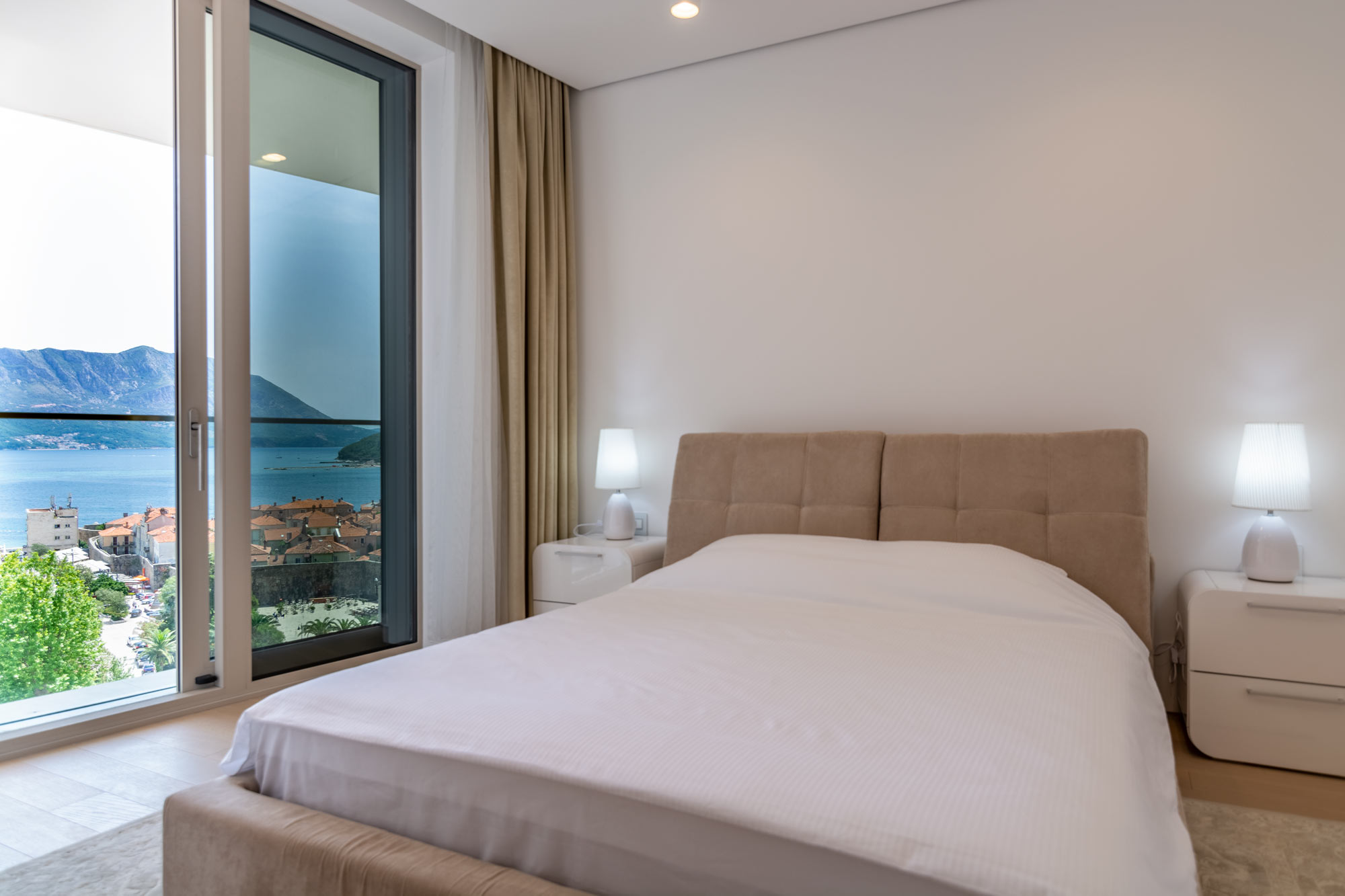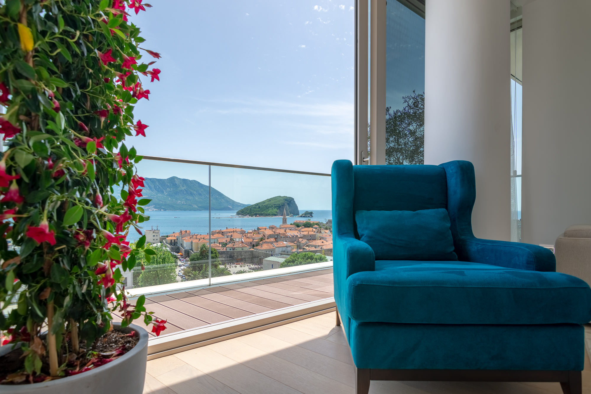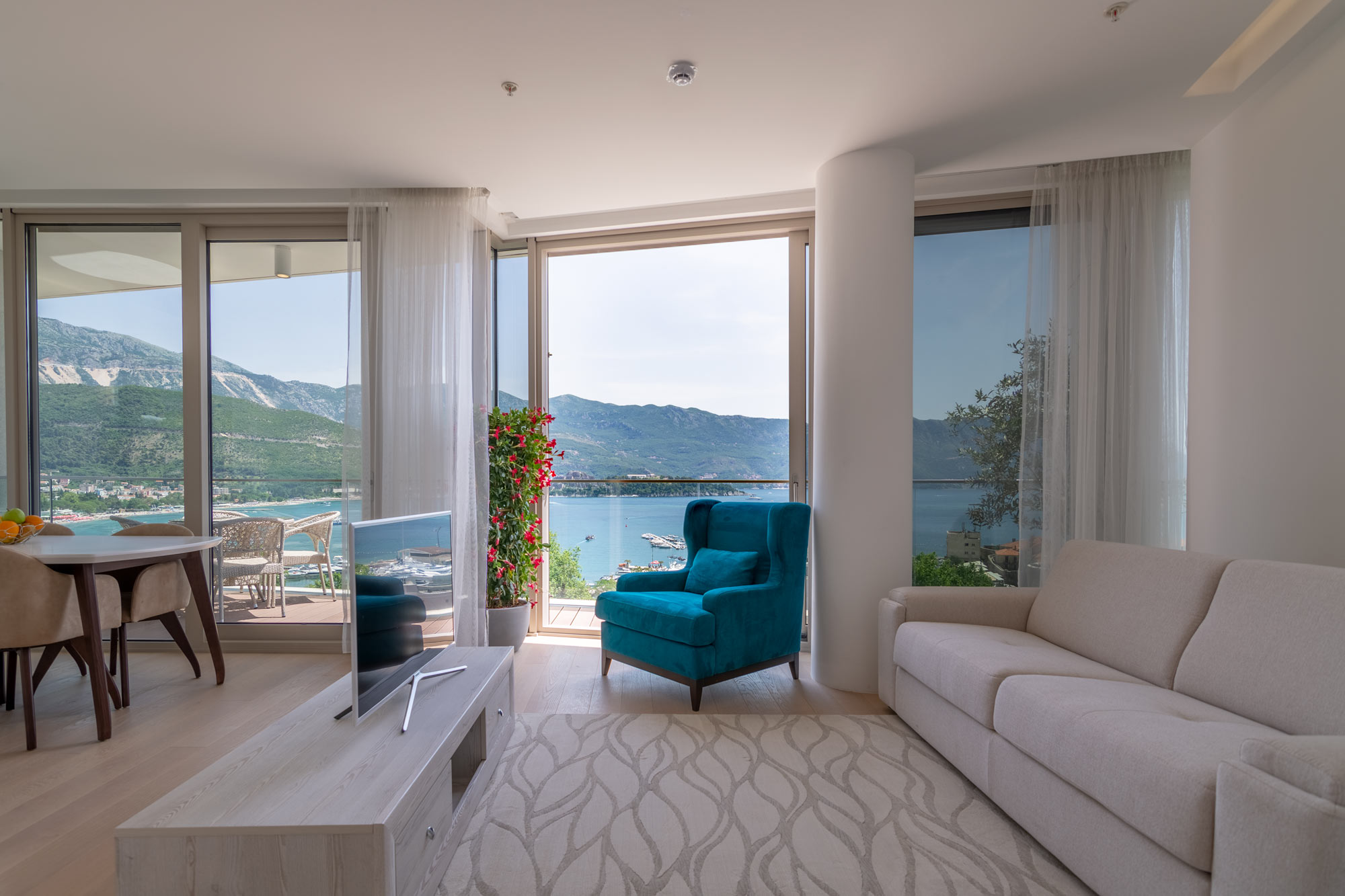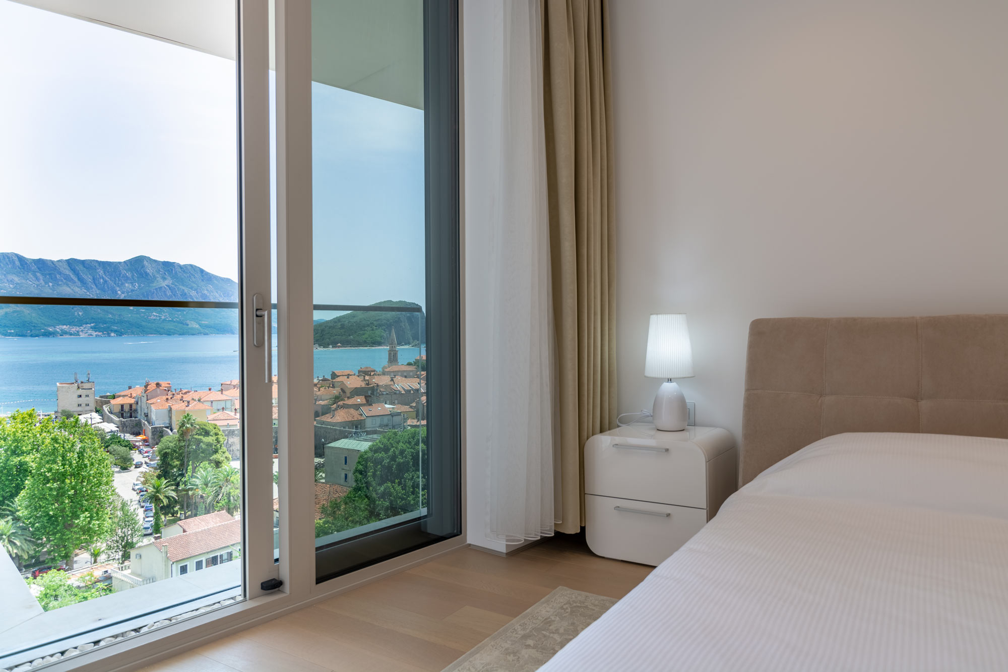 Огромные панорамные окна наполняют помещение воздухом и солнечным светом, позволяя вам любоваться вдохновляющими видами Черногории с утра до самого вечера.