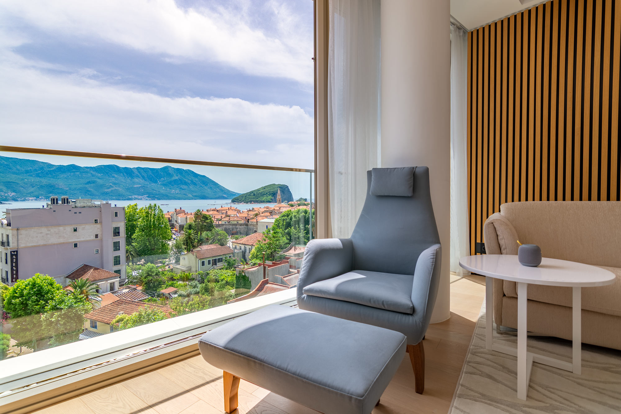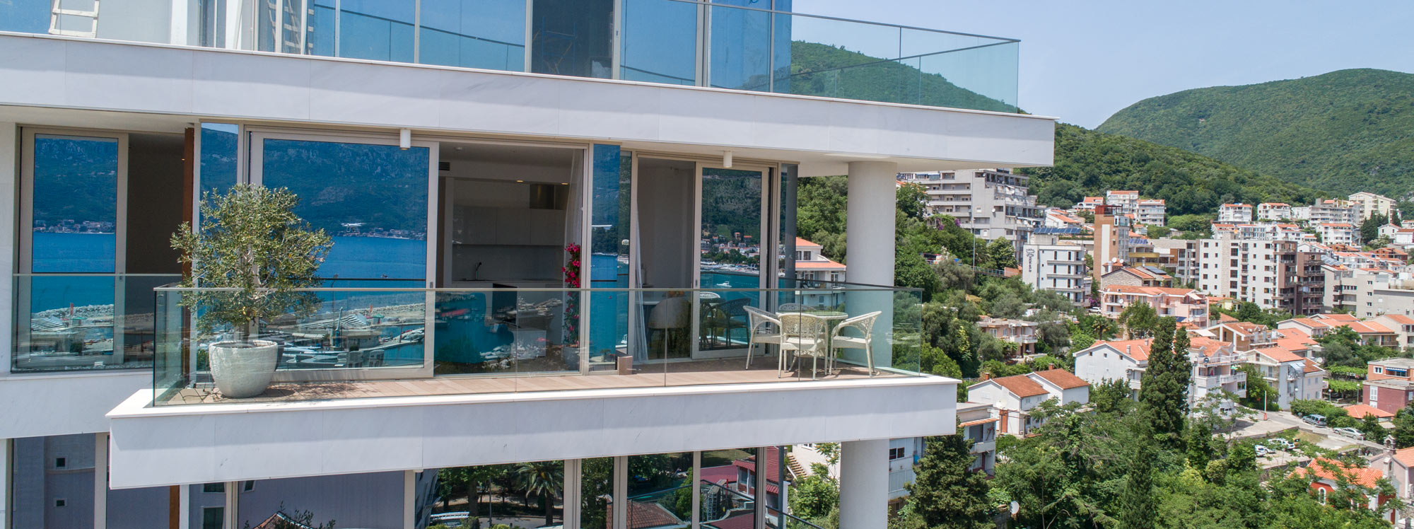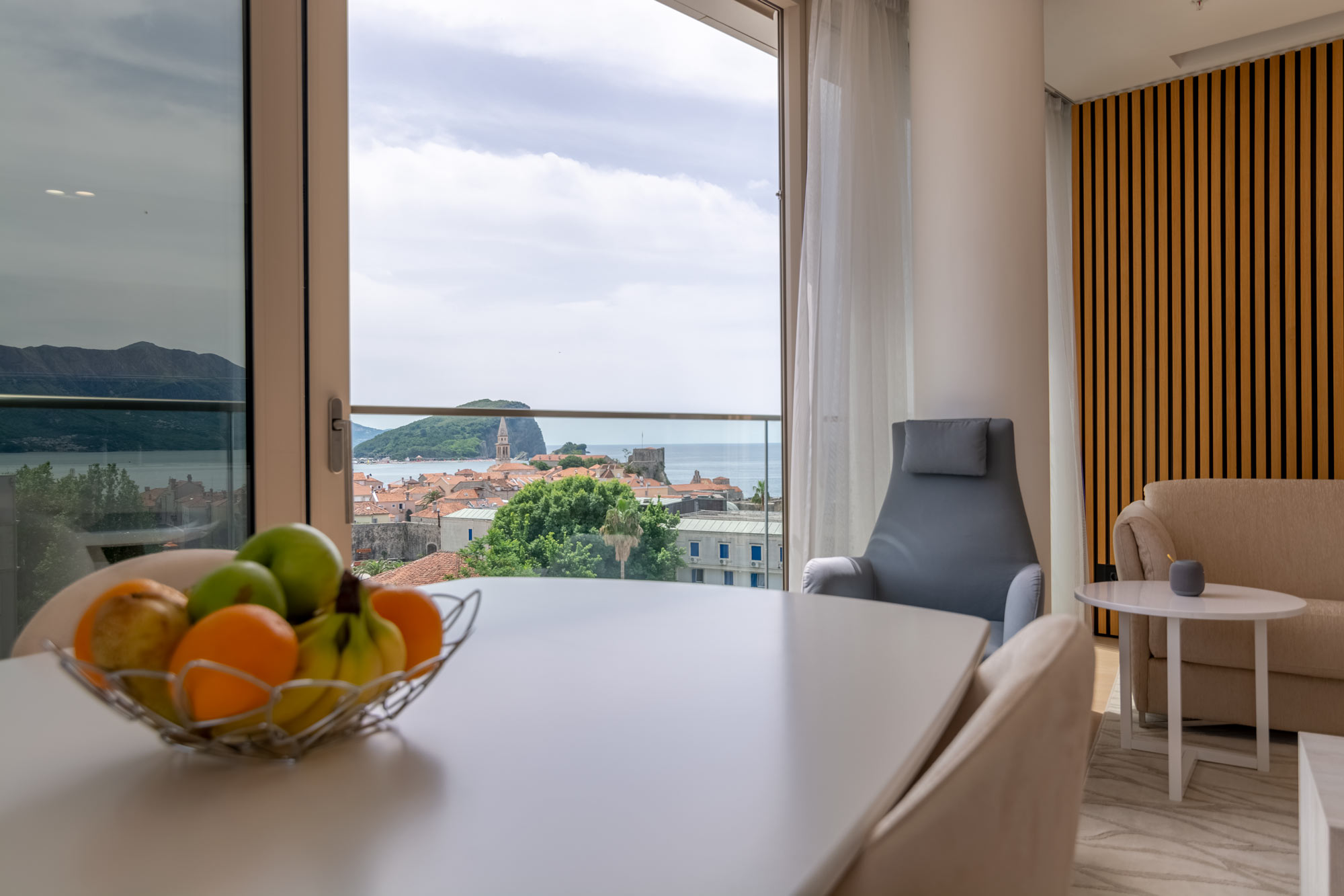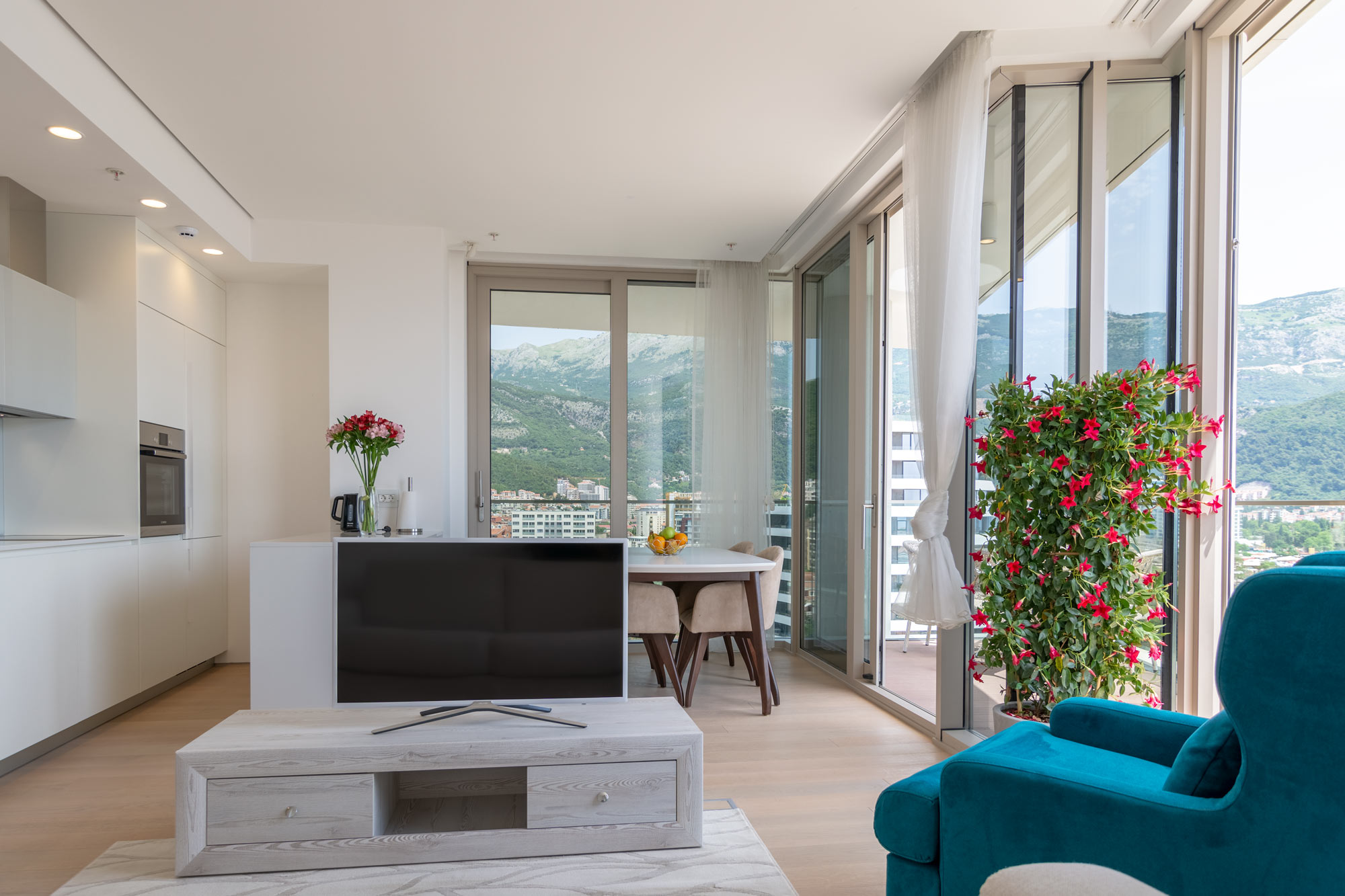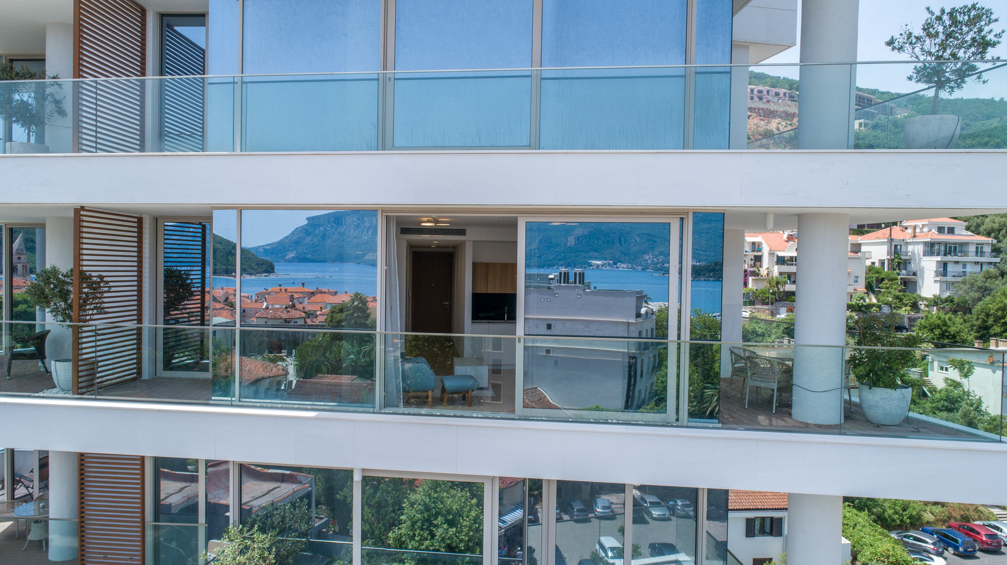 Огромные панорамные окна наполняют помещение воздухом и солнечным светом, позволяя вам любоваться вдохновляющими видами Черногории с утра до самого вечера.
