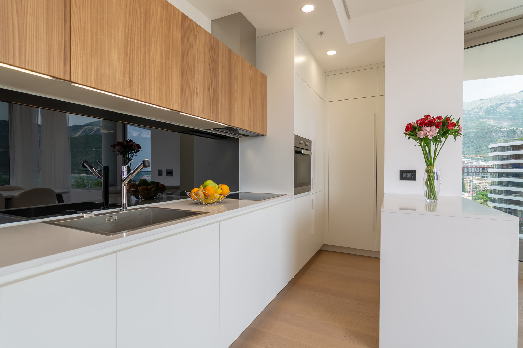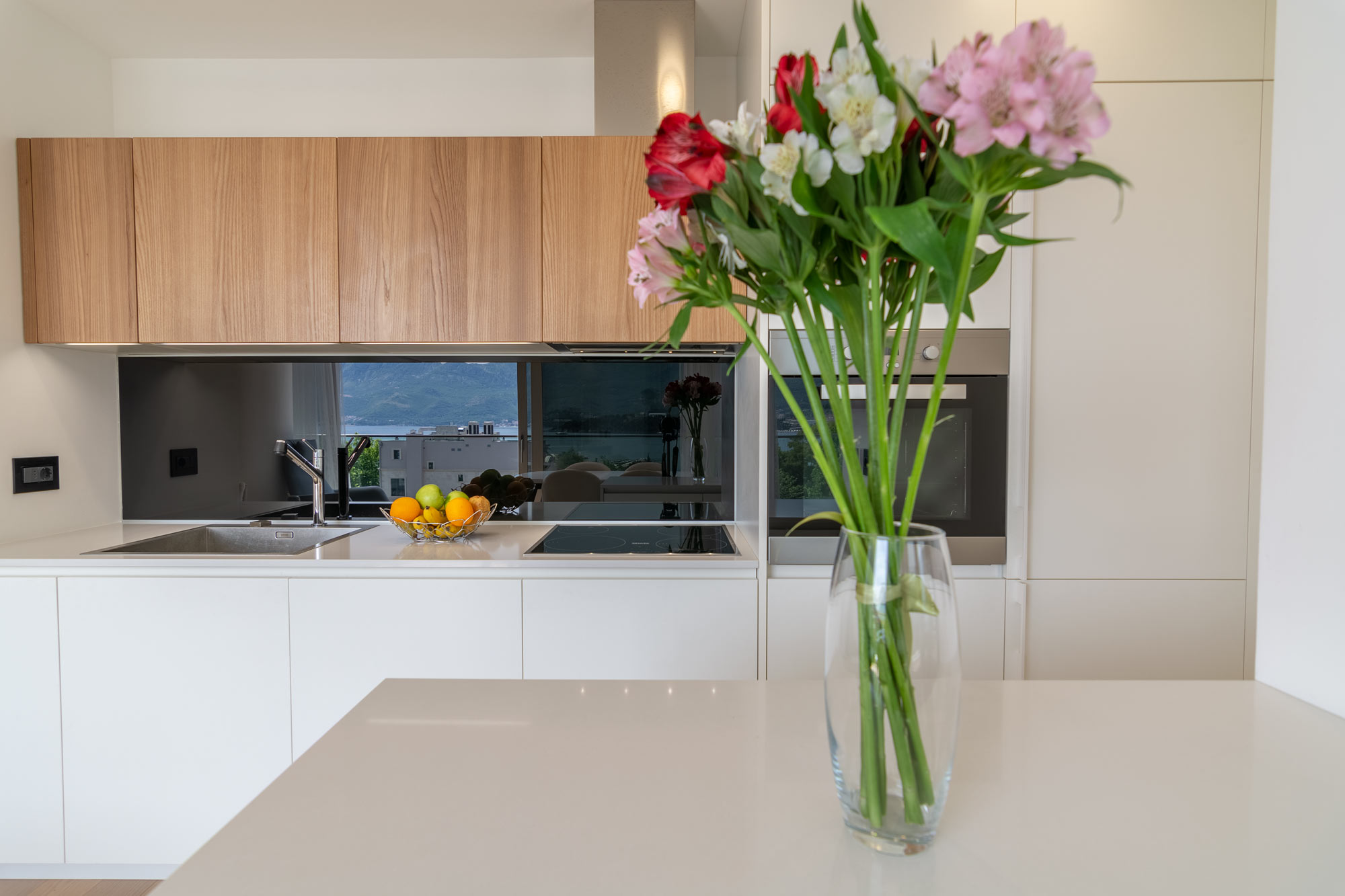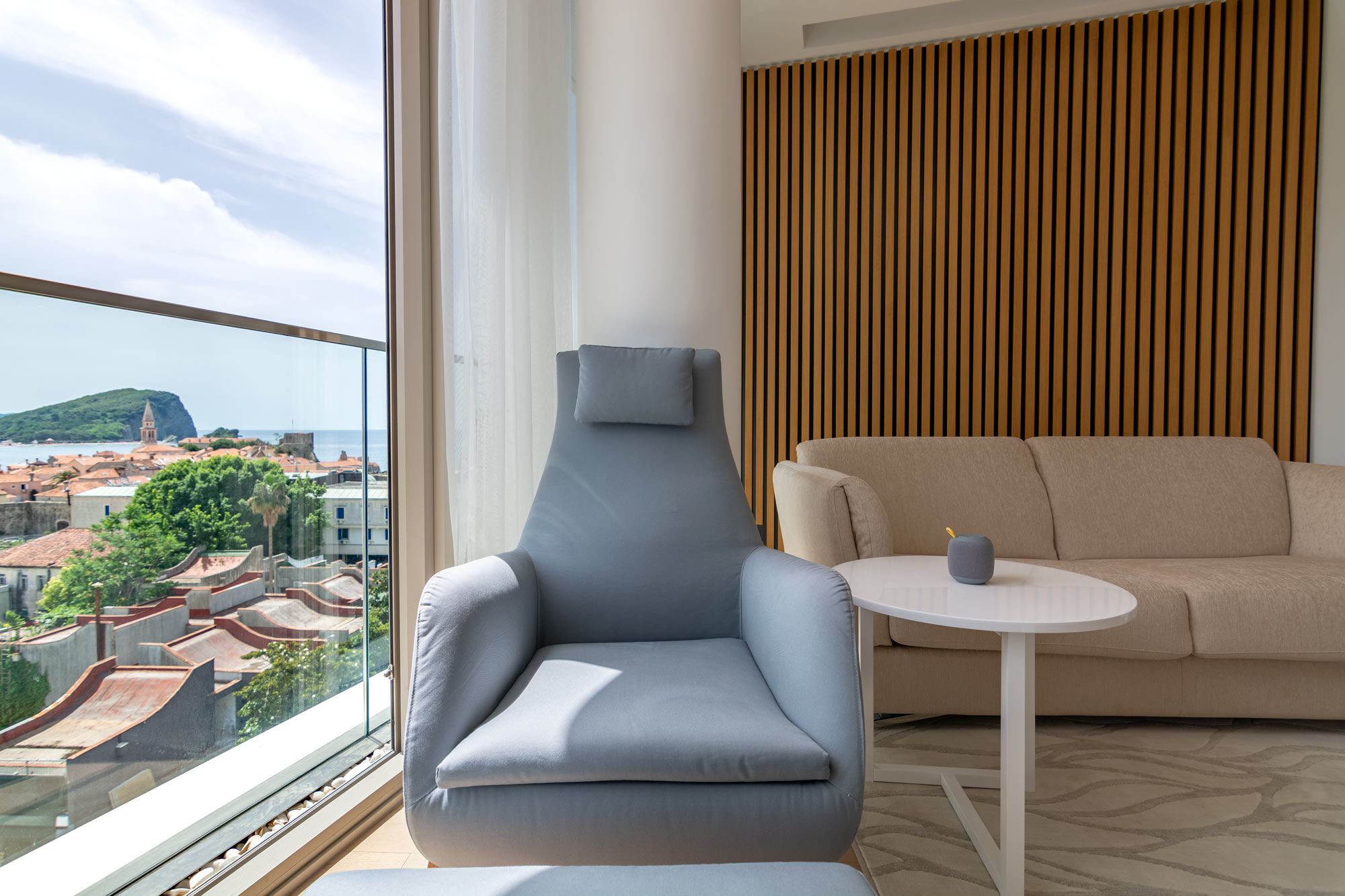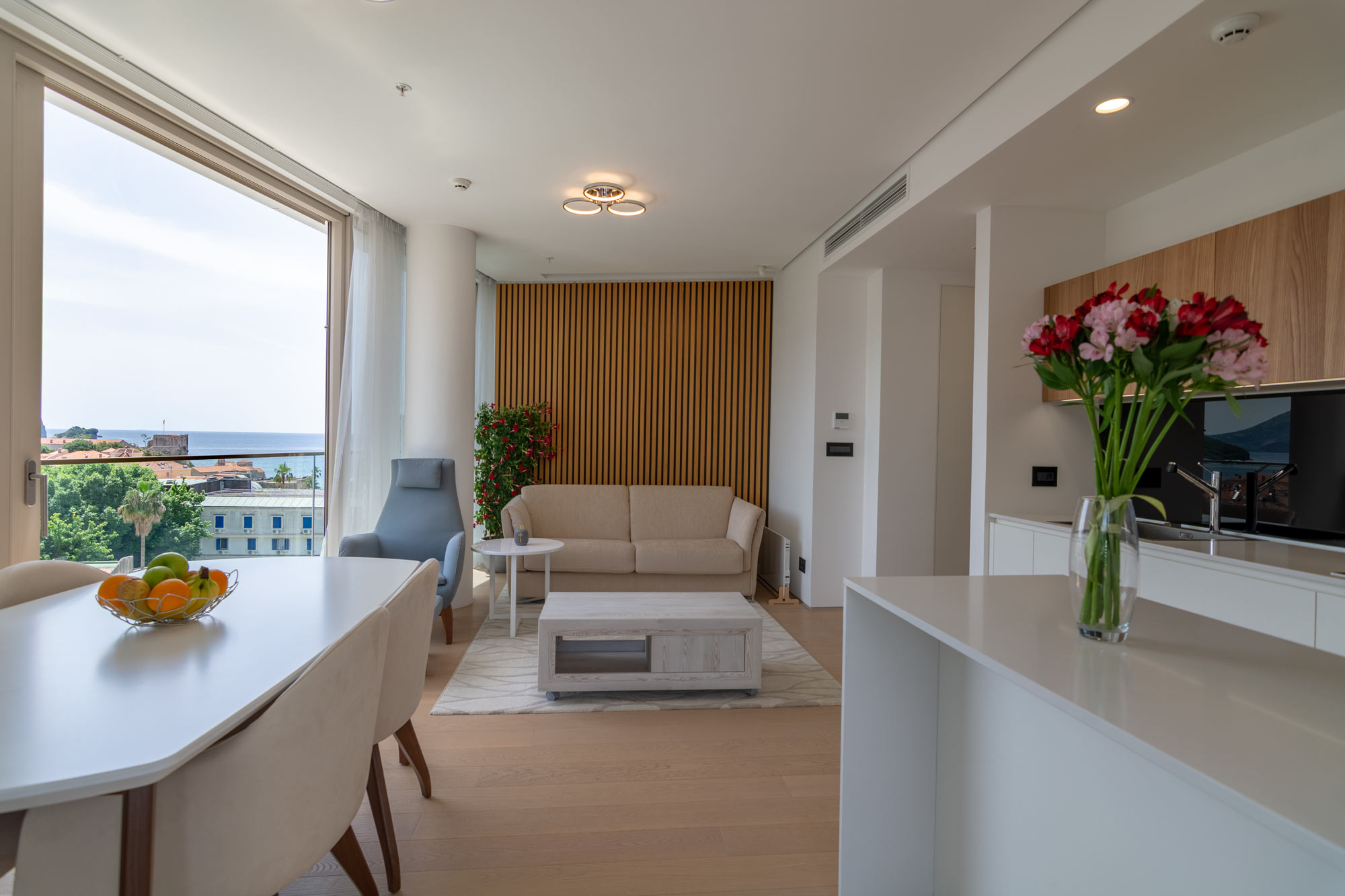 Огромные панорамные окна наполняют помещение воздухом и солнечным светом, позволяя вам любоваться вдохновляющими видами Черногории с утра до самого вечера.